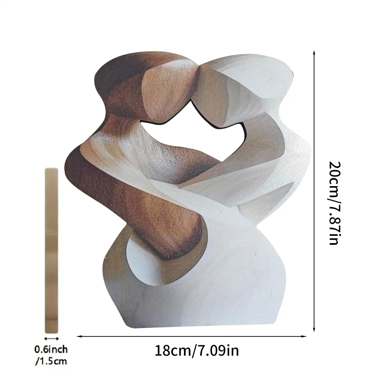 20CM 2D Flat Elegant Wooden Couple Statue Modern Home Decor Artificial Wood Figu