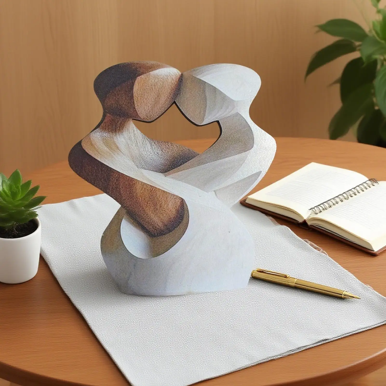 2.Harmonious Decor Statement: Featuring minimalist aesthetics, the wooden couple statue showcases an artistic silhouette design with flowing abstract lines to create a calming harmonious ambiance