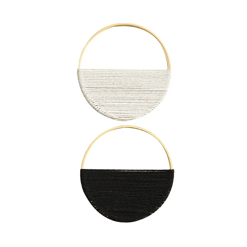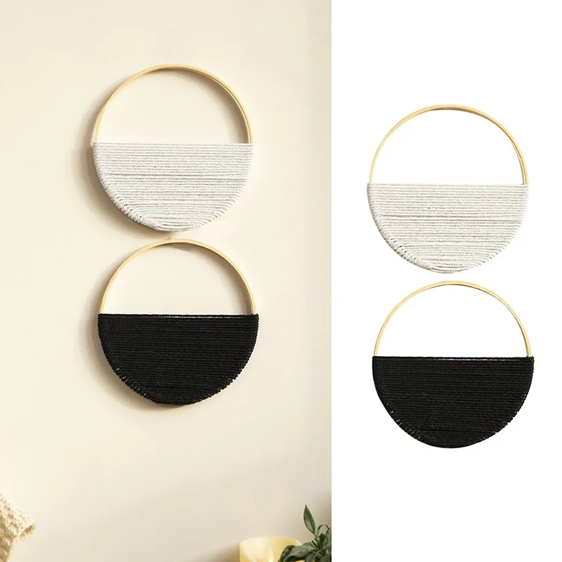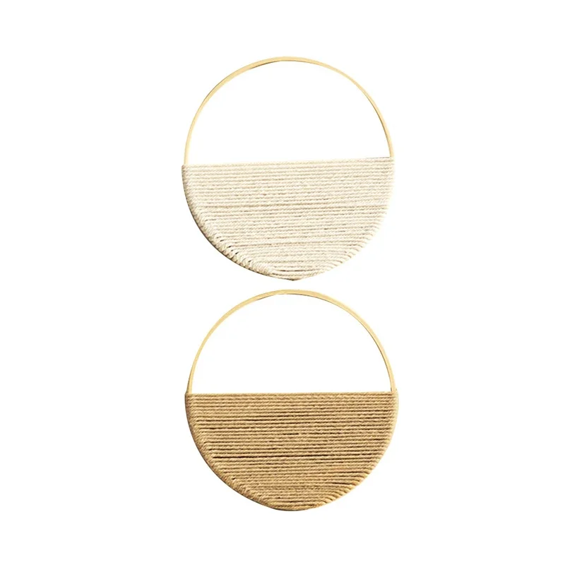 2Pcs Hand Woven Bohemian Wall Hanging Circular Wooden Cotton Rope Wall Decor Art