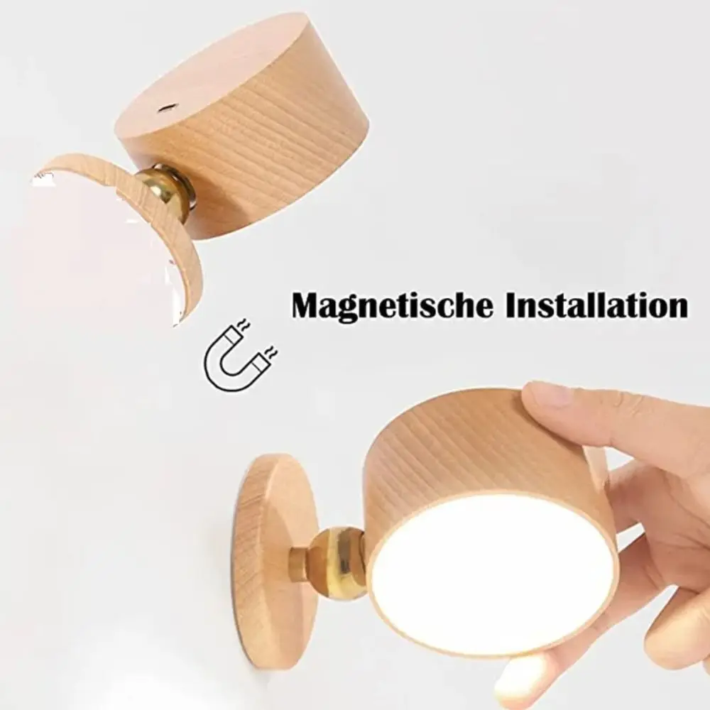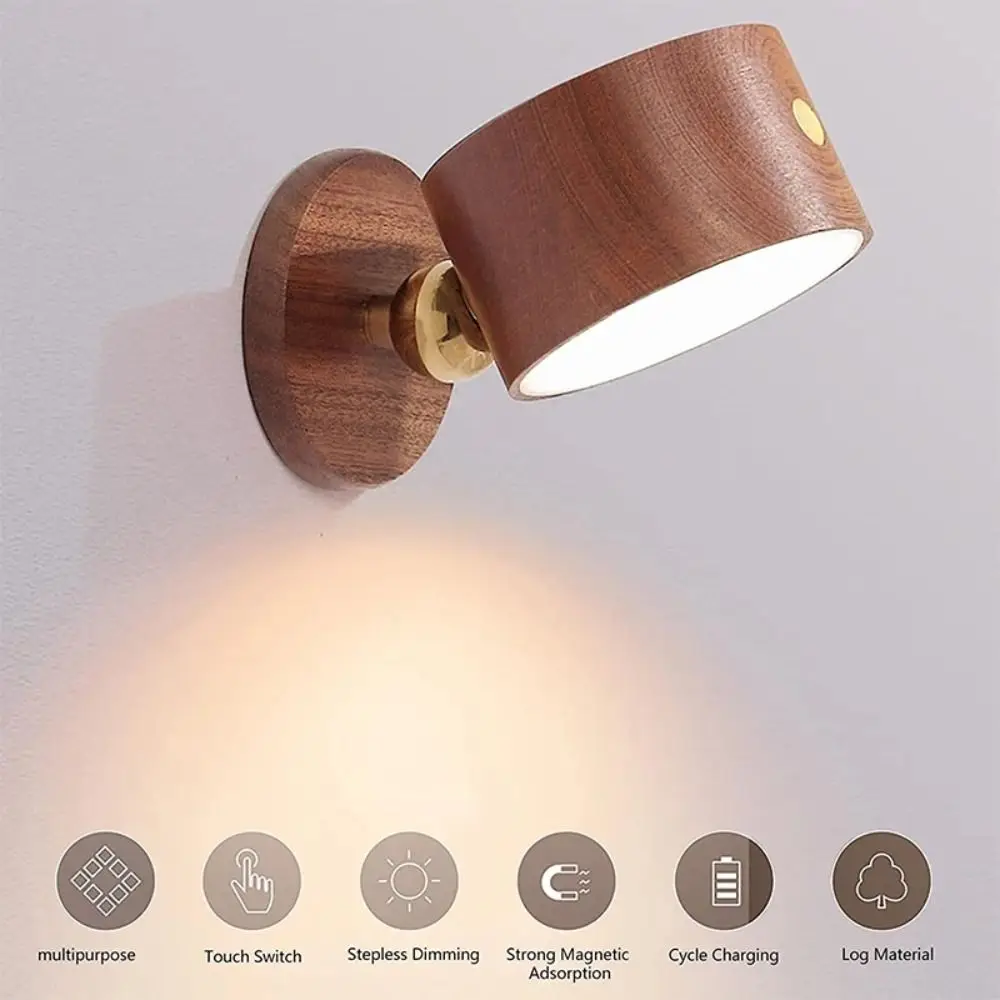360° Rotating Wooden Wall Mounted Lamp Dimmable Magnetic Mountin Magnetic Night