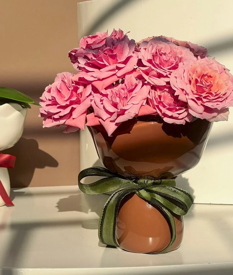 Ceramic Vase Rose Flower Shaped Vase Desk Decorati Flowers Bouquet for