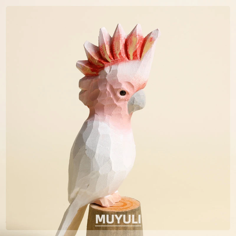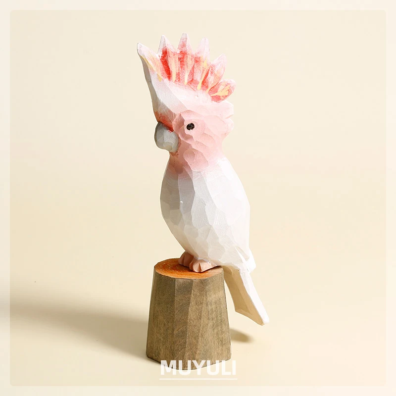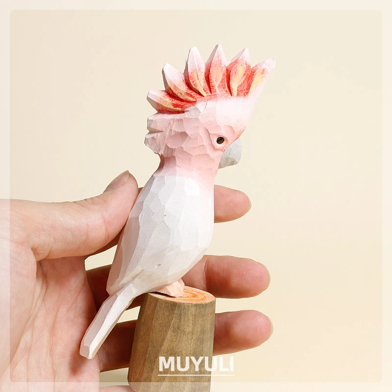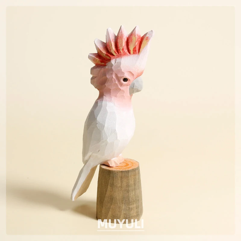 Handmade Carved Wood Parrot Decorative Ornaments Cute Wooden Decor On Desk Decor