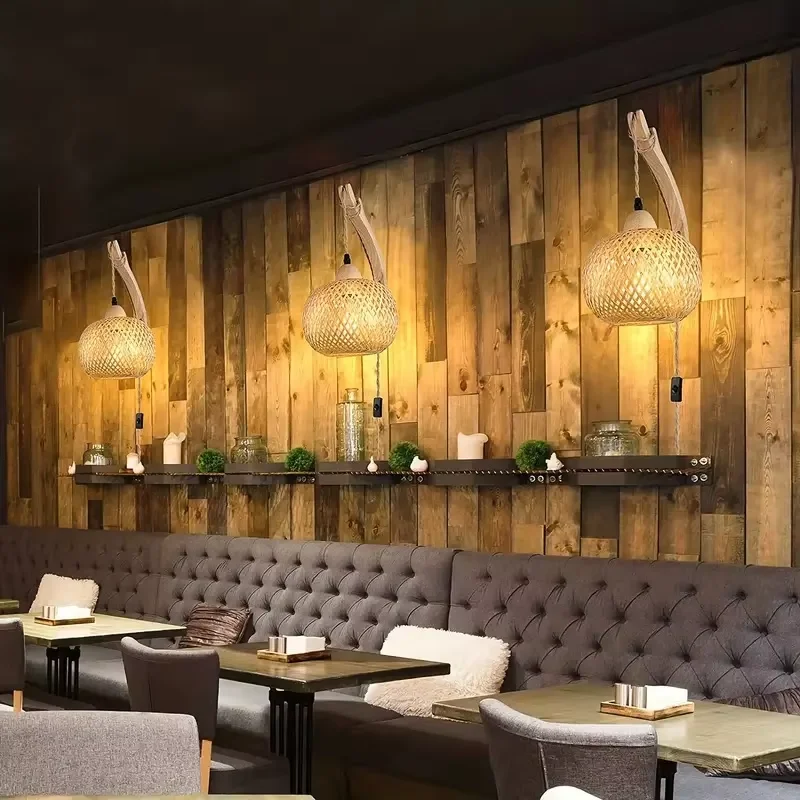 Handwoven Wall Lamp LED Retro Bamboo Wall Lamp for Hotel Corridor Decorative Rat