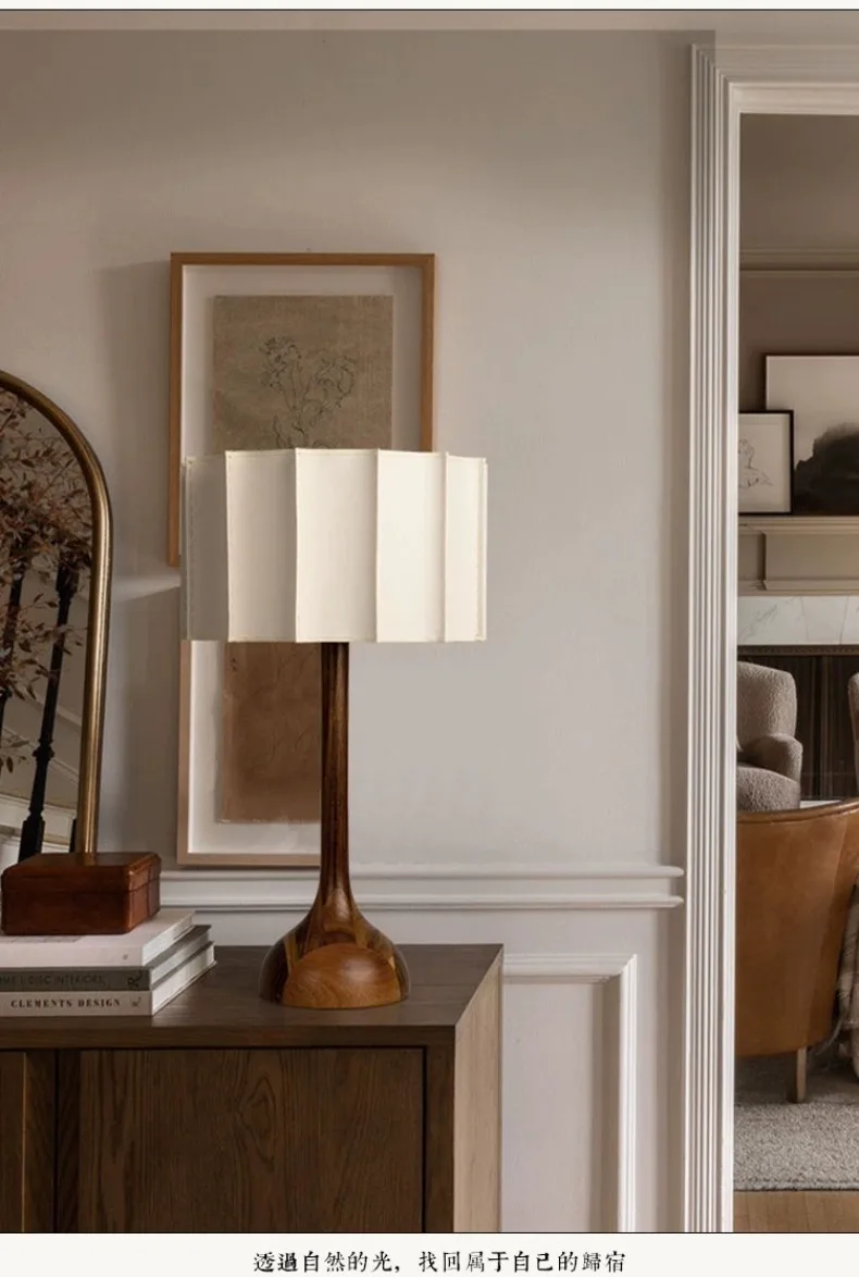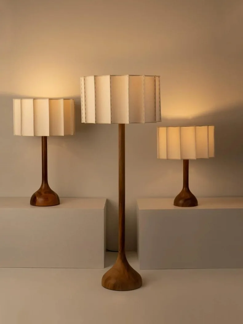 Japanese Wabi Sabi Wooden Base Floor Lamps Pleated White Fabric Lampshade Living