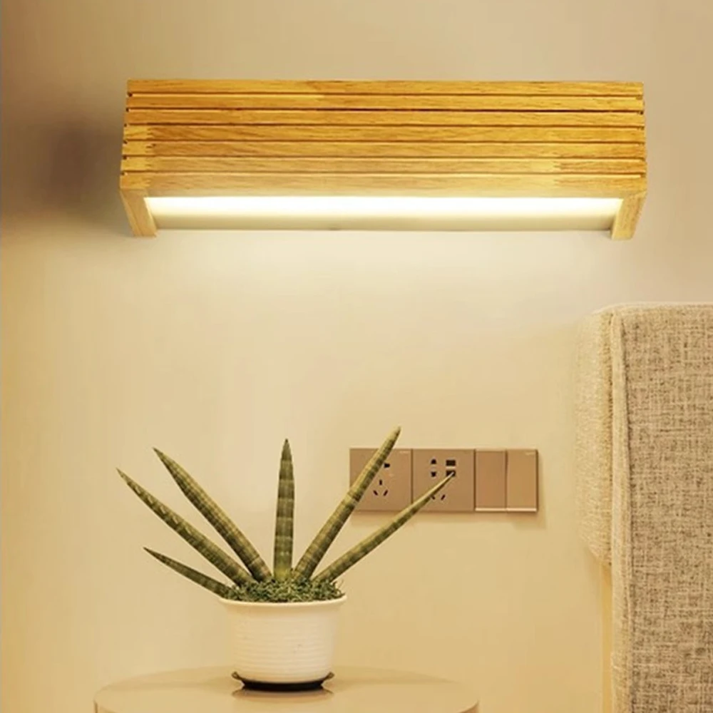 LED Soild Wood Wall Lamp Bedroom Modern Wall Light Bedside Sconces Indoor Lighti
