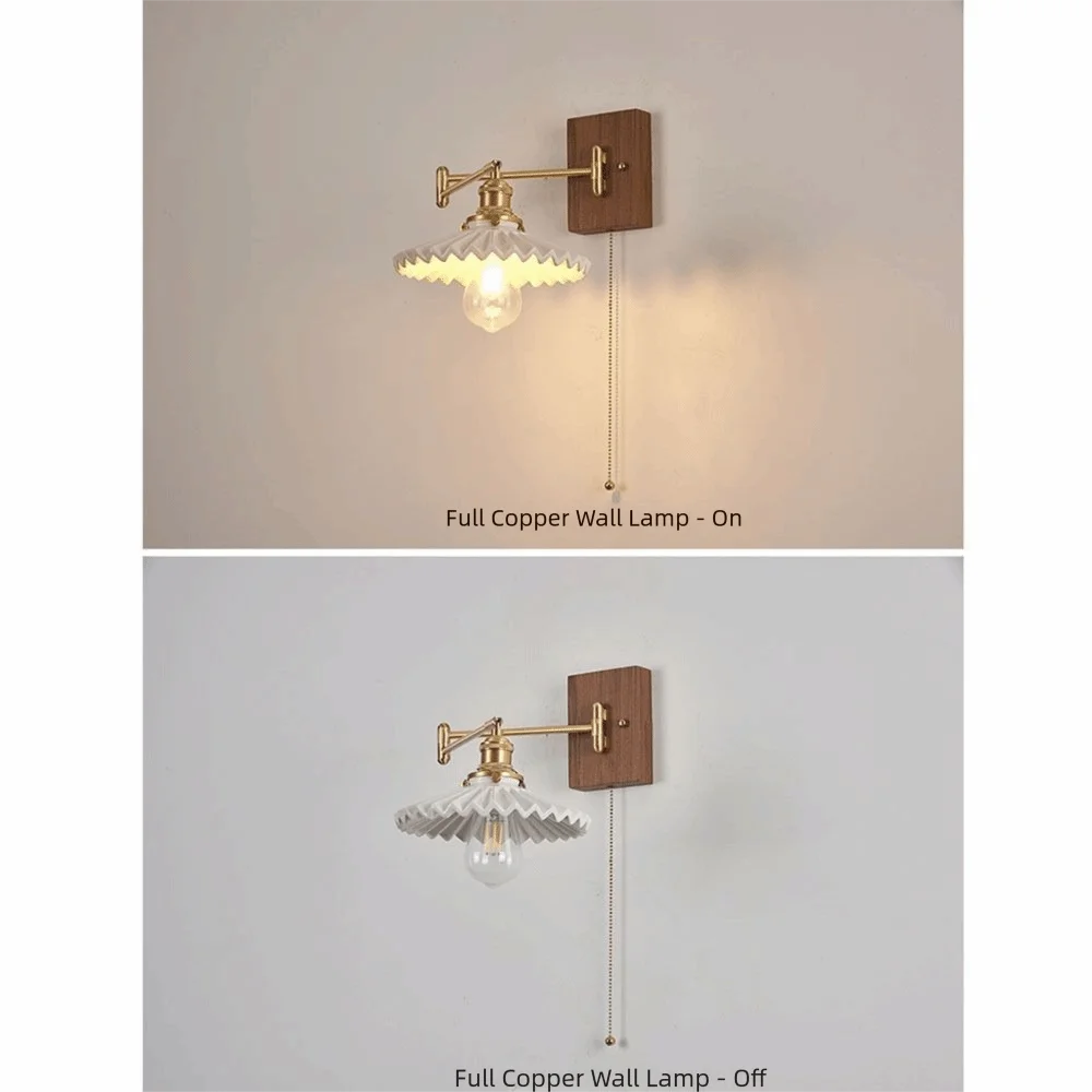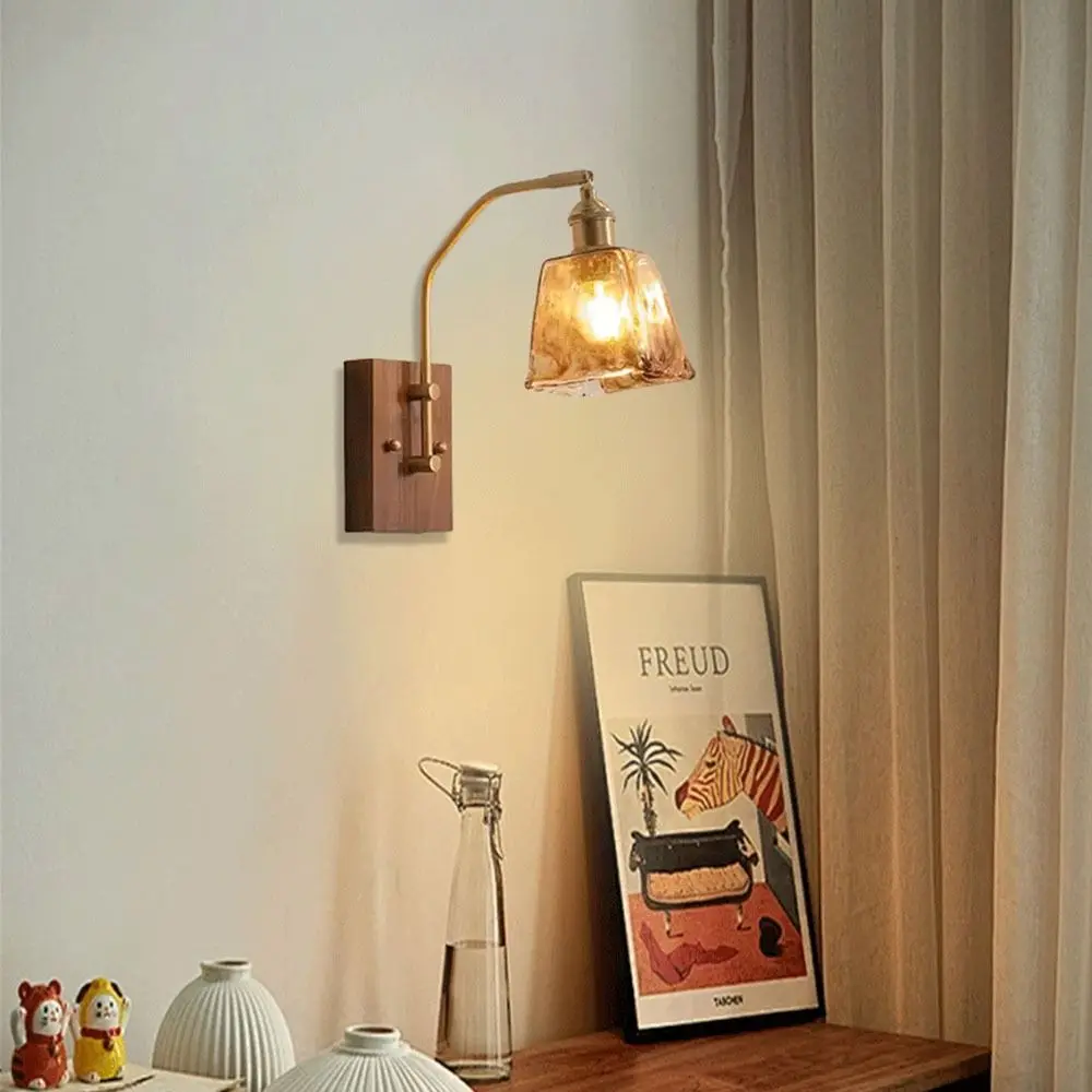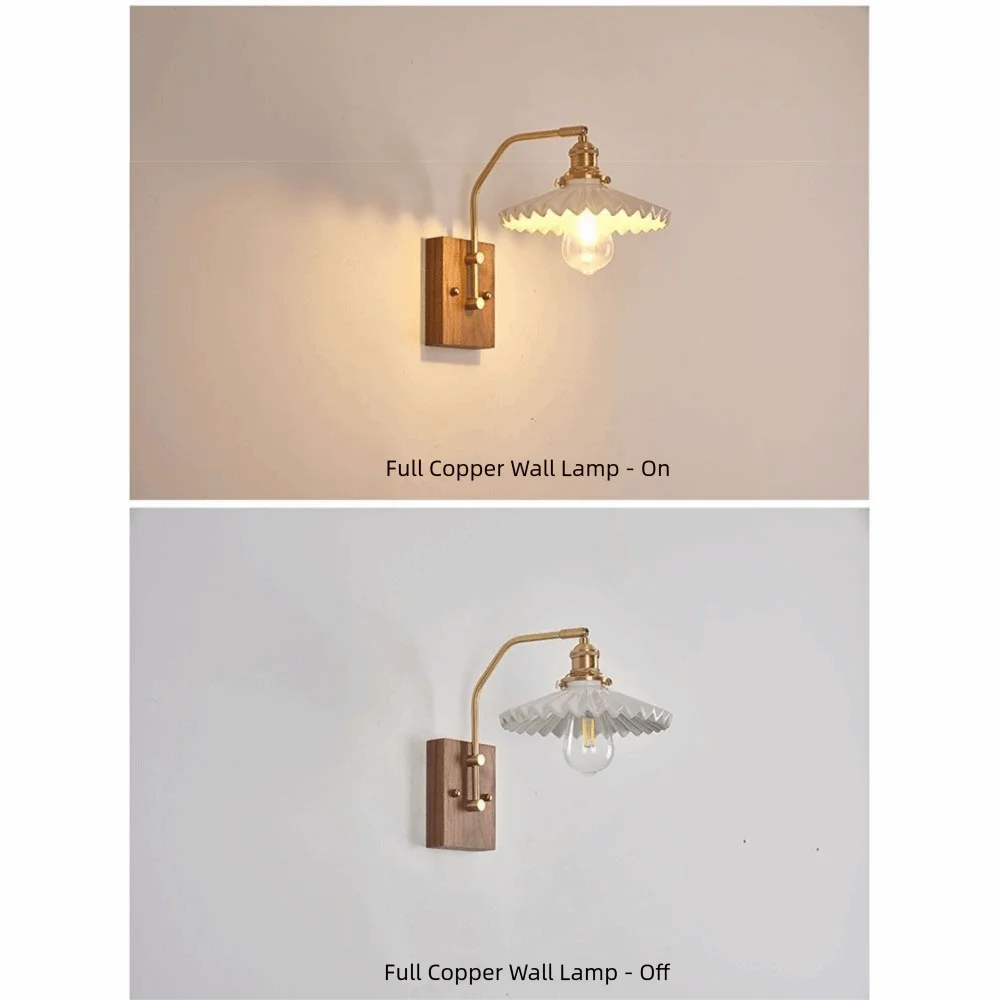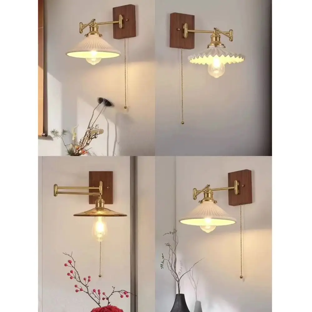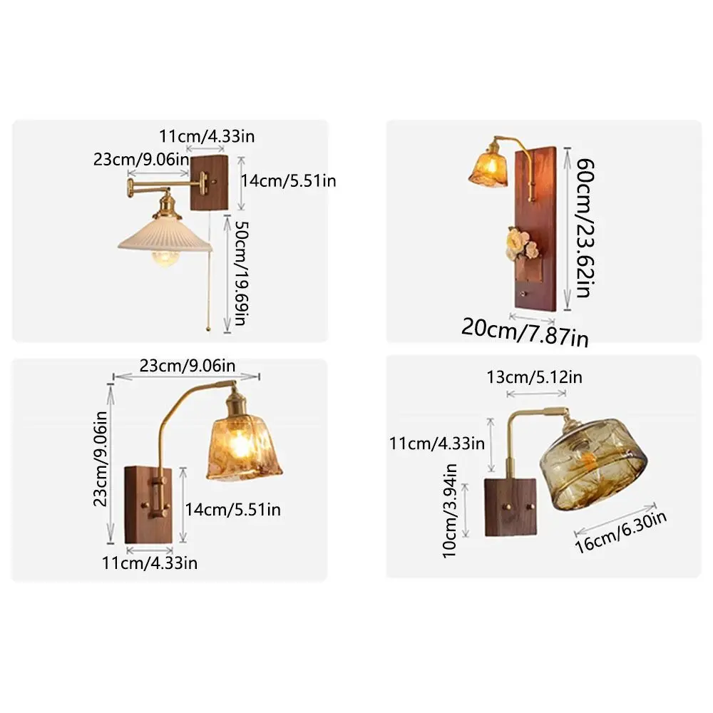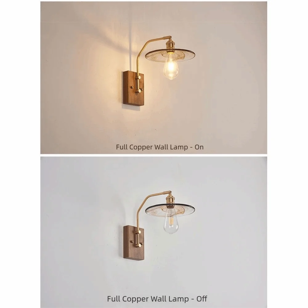 Modern Luxury Retro Wooden Wall Lamp Vintage Walnut Nordic Glass Wall Sconce AC1