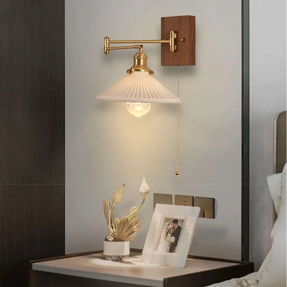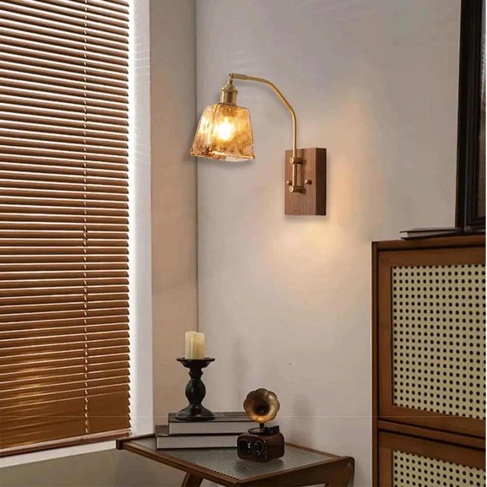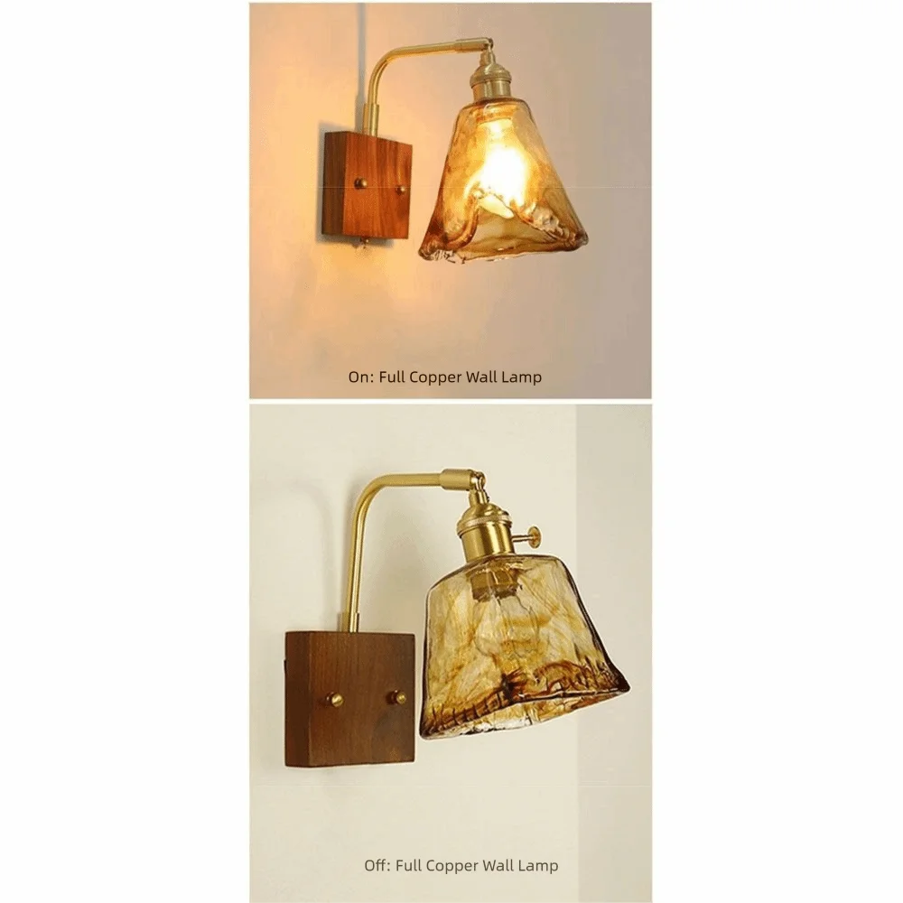 Modern Luxury Retro Wooden Wall Lamp Vintage Walnut Nordic Glass Wall Sconce Atm