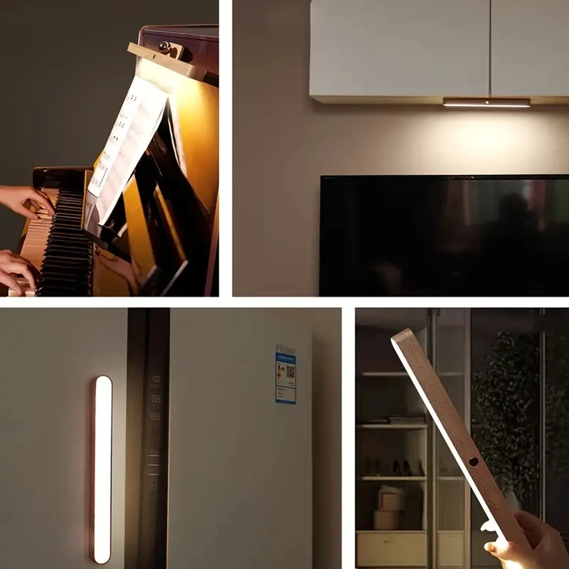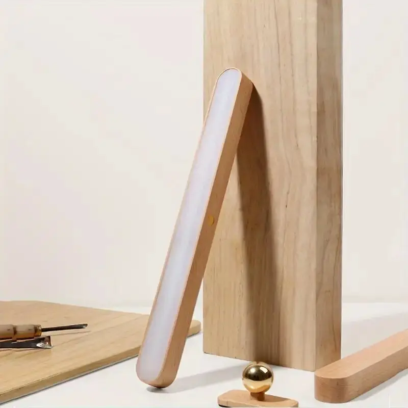 Modern Wooden LED Night Light - Touch-Controlled, Rechargeable, Wall Mount or Fr