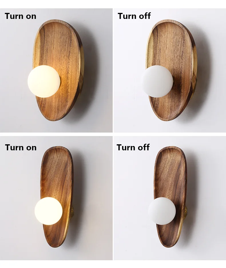 Natural Wooden Wall Mounted Lamp Vintage LED Bedside Sconce For Bedroom Living Room Hallway Decor Retro Aisle Lighting Fixture