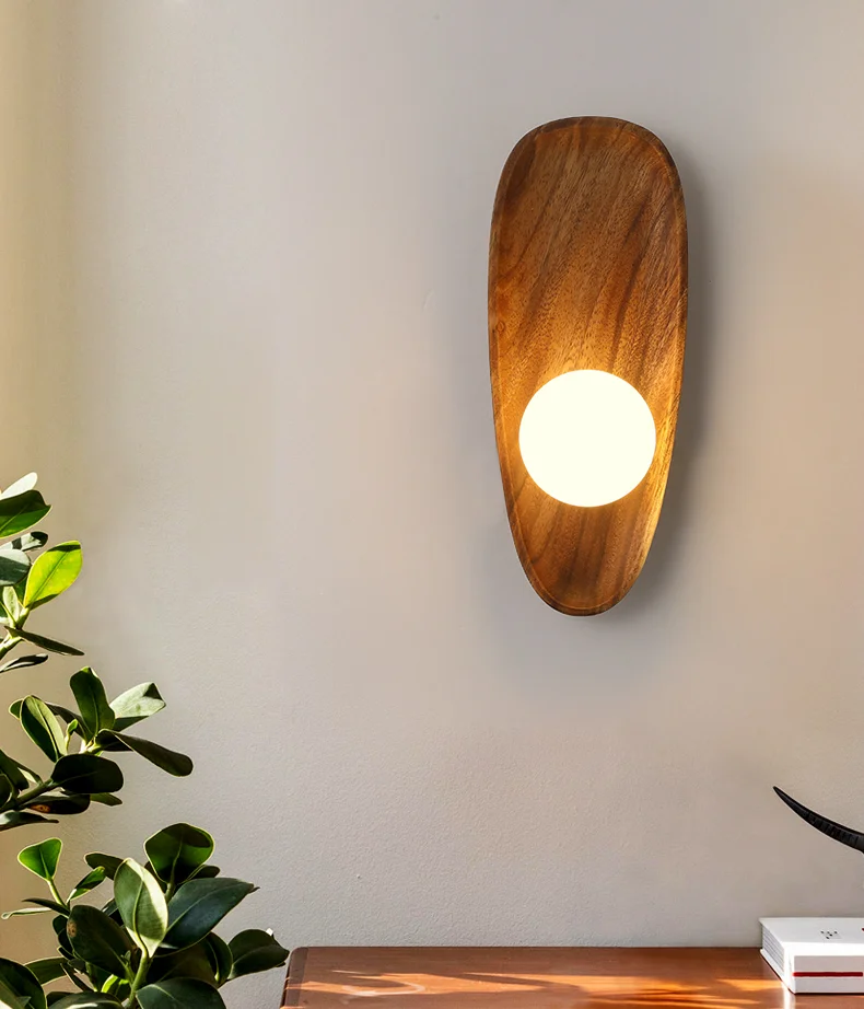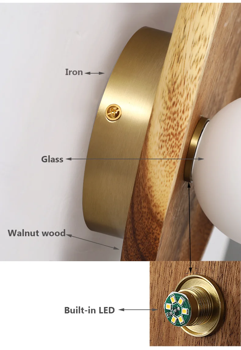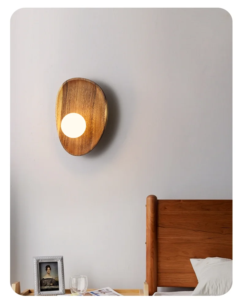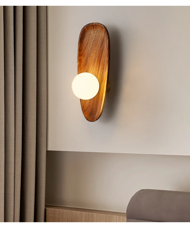 Natural Wooden Wall Mounted Lamp Vintage LED Bedside Sconce For Bedroom Living R