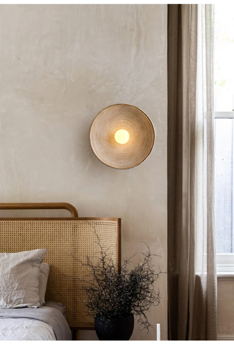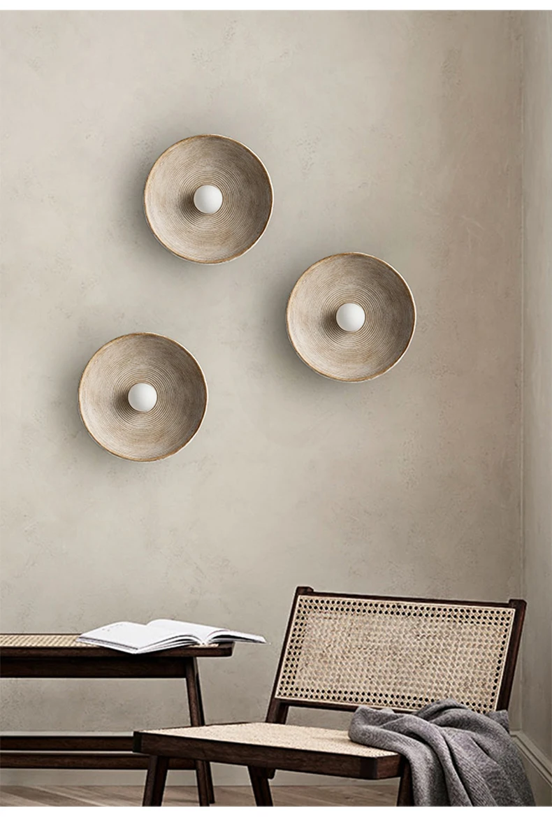 Nordic Retro Wood Grain Wall Lamps For Bedside Study Dining Room Corridor Round
