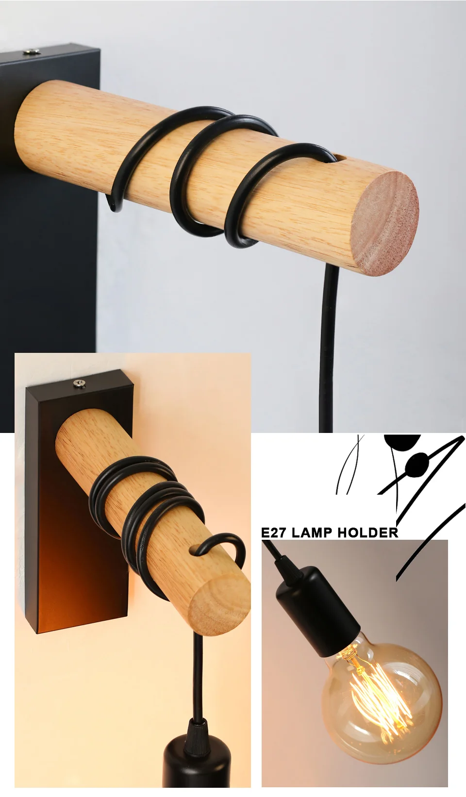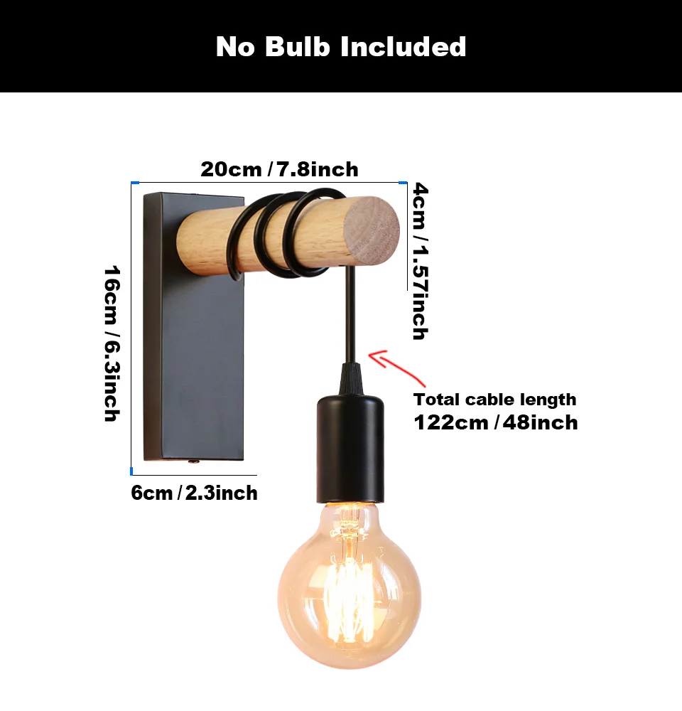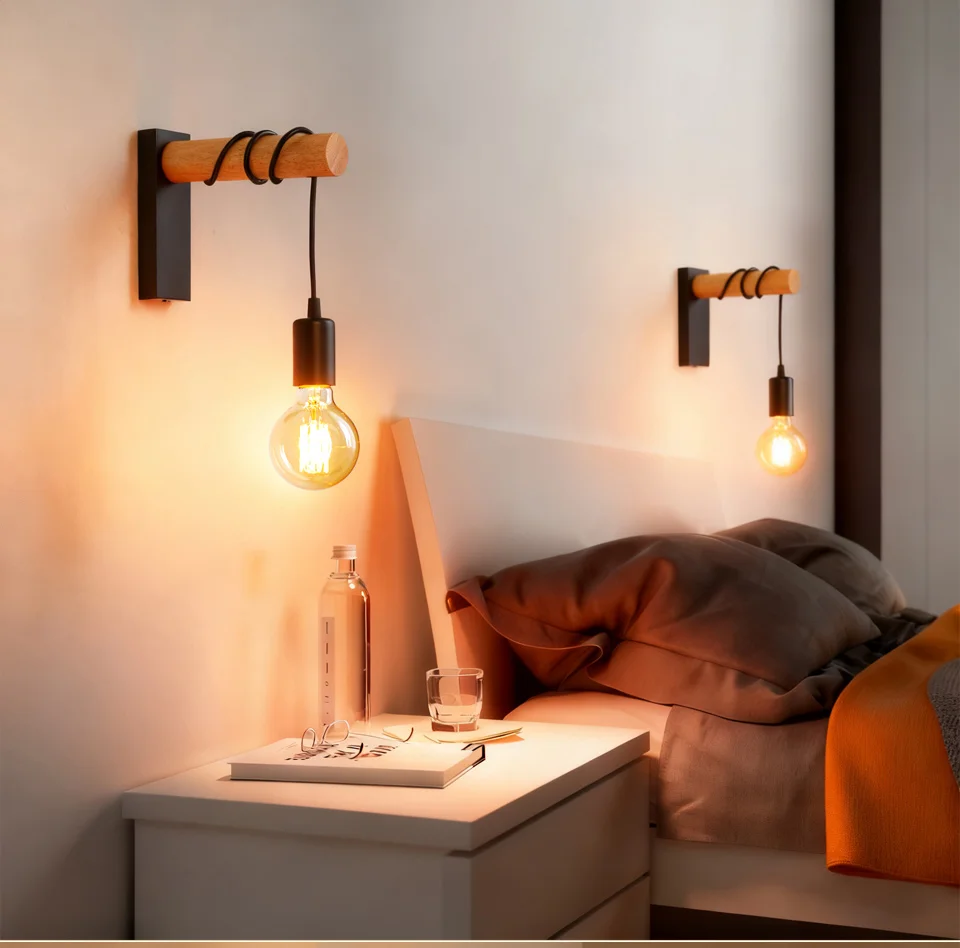Vintage Retro Wood Wall Lamp Sconce Wall Lights Fixture E27 Indoor Home Decor Di