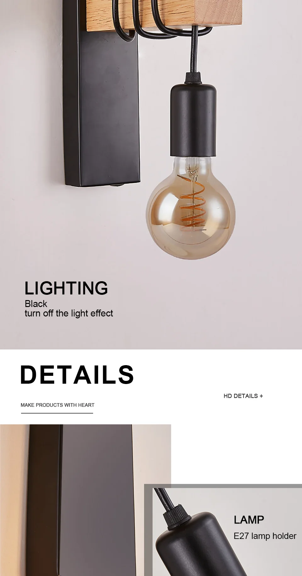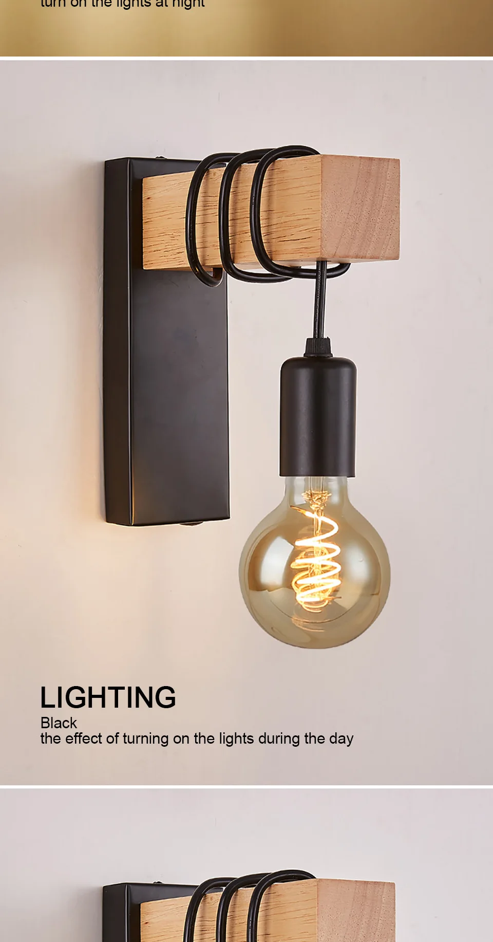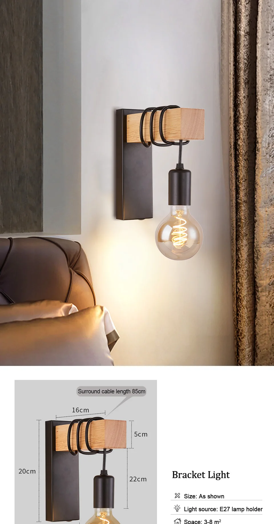 Wall Lamps 85V-265V Wooden Kinkiety Na Sciane Wall Lamps for Living Room Lampara