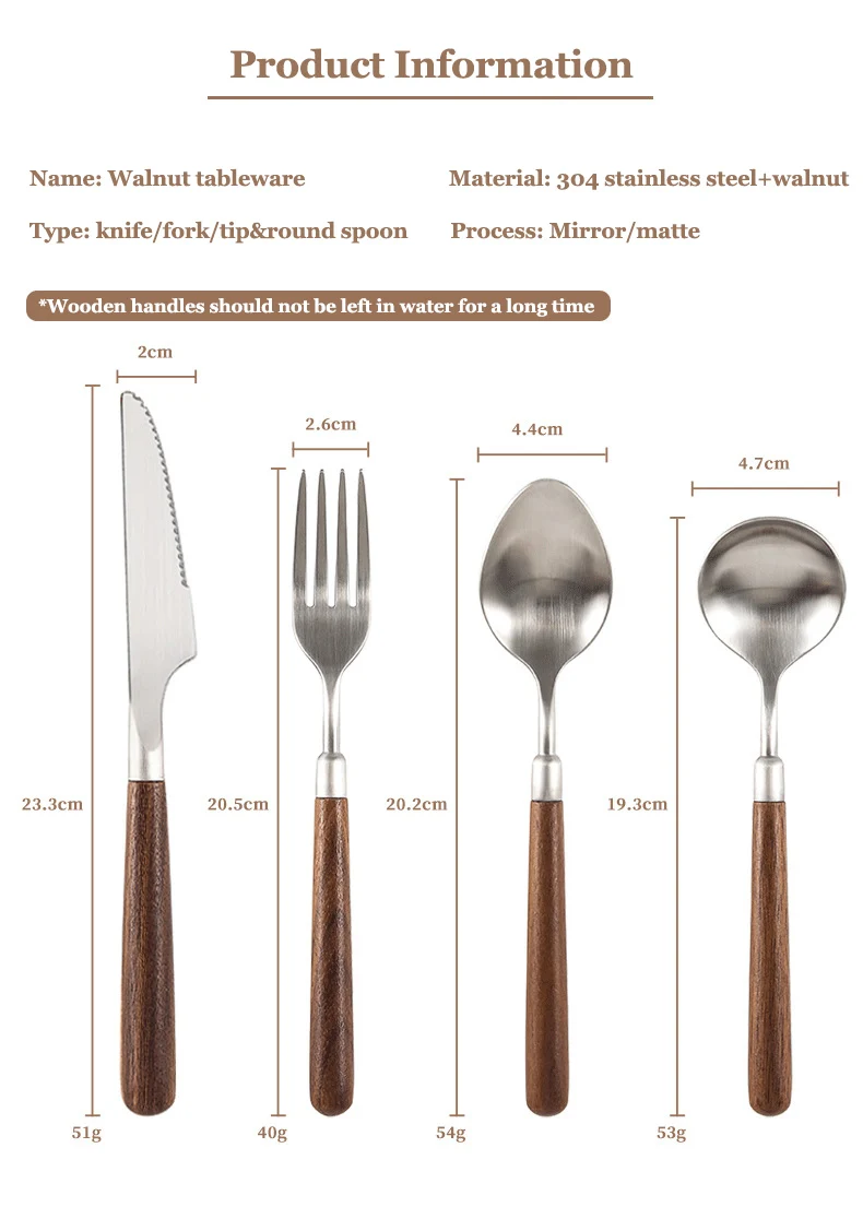 Name: Walnut handle stainless steel tableware