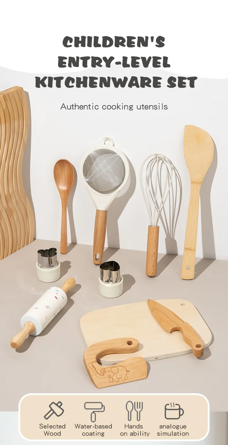 Wooden Kids Safe Knife and Kids Baking Set for Real Cooking,Kids Kitchen Toy Mon
