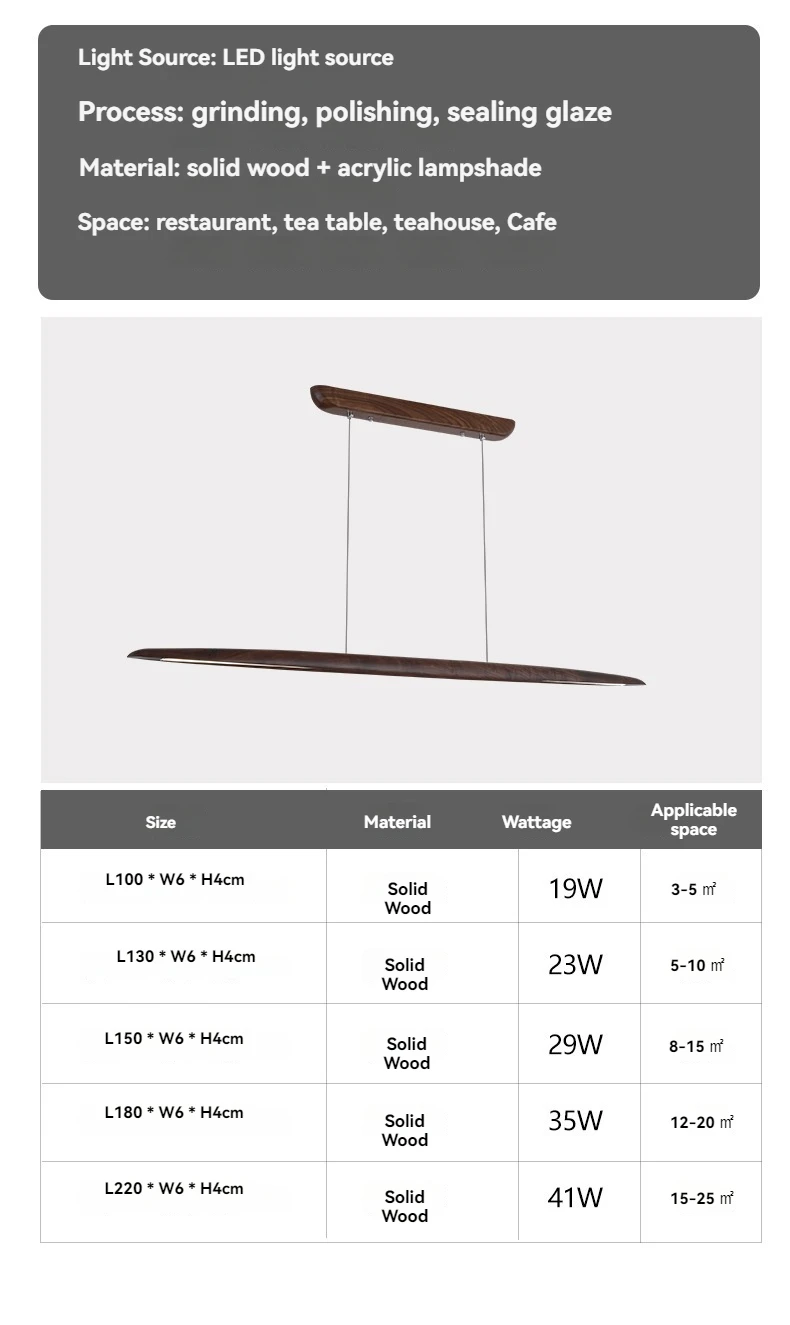 Wooden Long Led Lights Ceiling Chandelier for Table Dining Room Decor Kitchen Ba