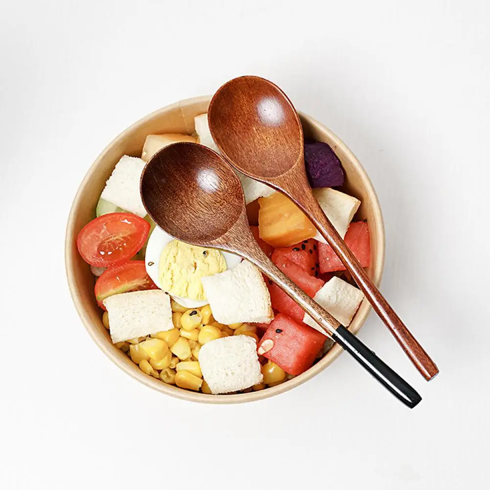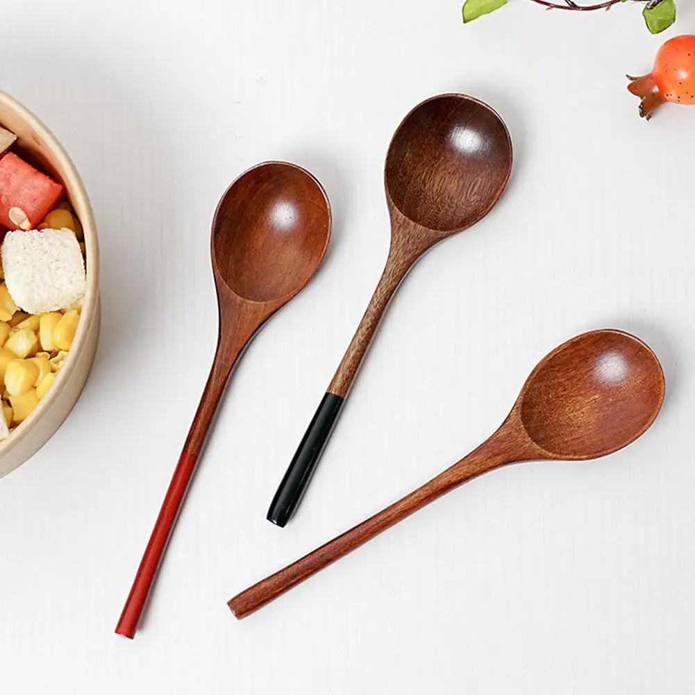 Wooden Soup Spoon Tableware Durable Cooking Utensil Tools Retro Style Long Handl